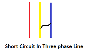 When the line touches with another line means, the voltage between these two lines becomes zero, hence the current will become very high. Short circuit faults are very dangerous to the electrical equipment since they dames easily.
