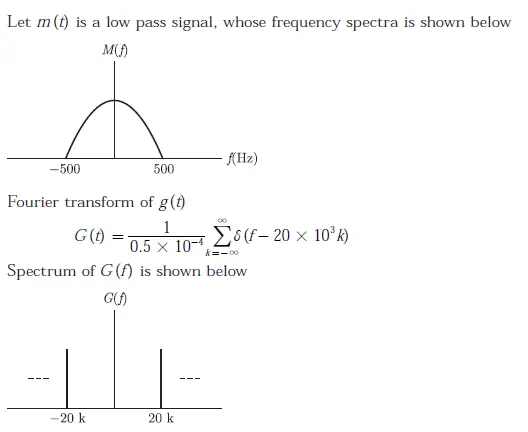 Q. 50 A signal m(t) with bandwidth 500 Hz is first multiplied by a signal g(t) where