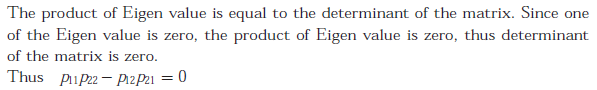 Q. 1 All the four entries of the are nonzero, and one of its eigenvalue is zero. Which of the following statements is true?