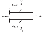 Q. 52 The cross section of a JFET is shown in the following figure. Let be -2 V and let