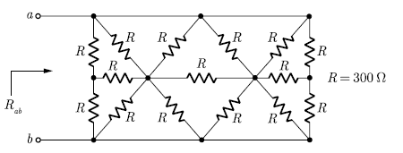 Q. 6 In the network shown in the figure, all resistors are identical with . The resistance