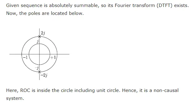 Q. 29 Suppose x[n] is an absolutely summable discrete-time signal. Its z-transform is a rational function with two poles and two zeroes. The poles are at . Which one of the following statements is TRUE for the signal x[n]?