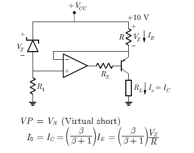 Q.23 Consider the constant current source shown in the figure below. Let represent the current gain of the transistor.