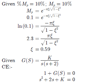 For the peak overshoot of the closed-loop system to a unit step input to be 10%, the value of K is _____.