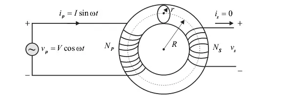 Q. 57 A transformer with toroidal core of permeability is shown in the figure. Assuming uniform flux density across the circular core cross – section of radius of