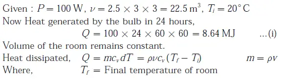 Q 48. A 100 W electric bulb was switched on in a size thermally insulated room having a temperature of