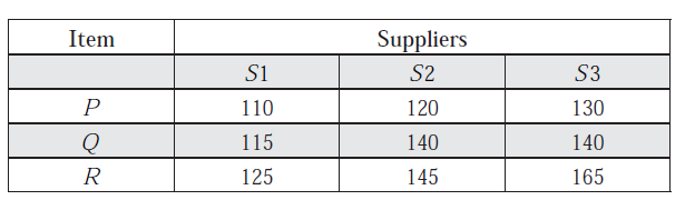 Q 68. A firm is required to procure three items (P, Q and R). The prices quoted for these items (in Rs.) by suppliers S1, S2 and S3 are given in table. The management policy requires that each item has to be supplied by only one supplier and one supplier supply only one item. The minimum total cost (in Rs.) of procurement to the firm is: