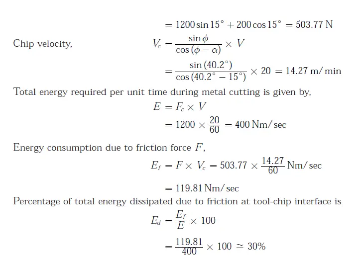 The percentage of total energy dissipated due to friction at the tool-chip interface is: