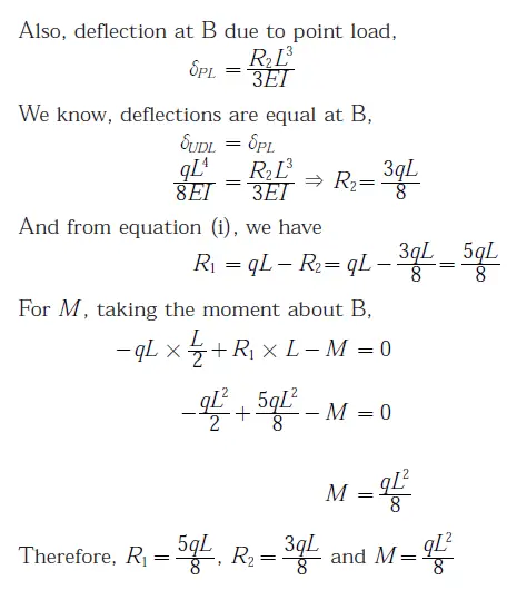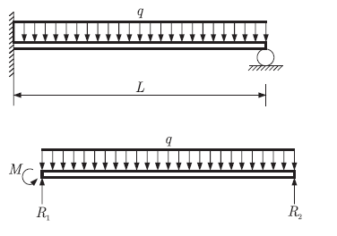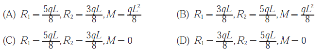 Q.42. A uniformly loaded propped cantilever beam and its free body diagram are shown below. The reactions are