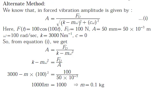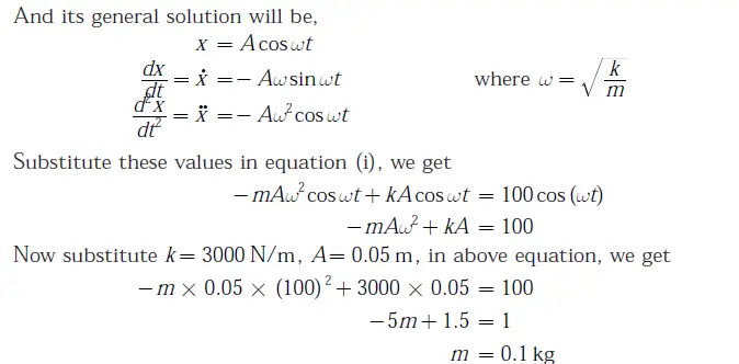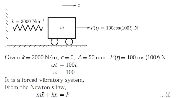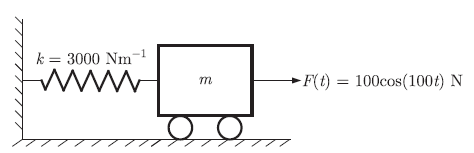 Q 33. A mass m attached to a spring is subjected to a harmonic force as shown in figure. The amplitude of the forced motion is observed to be 50 mm. The value of m (in kg) is