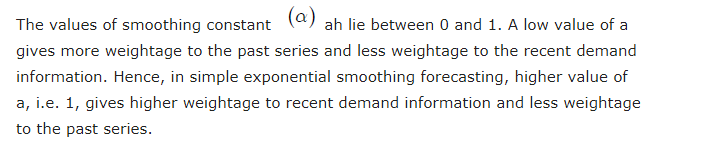 Q 25. In simple exponential smoothing forecasting, to give higher weightage to recent