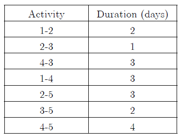 Q. 60 Following data refers to the activities of a project, where node 1 refers to the start