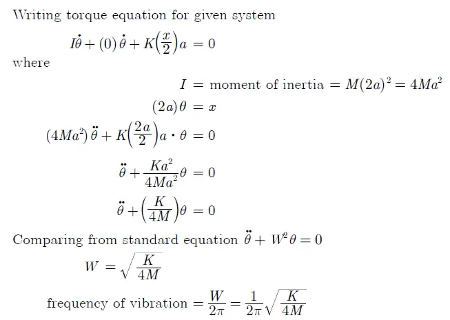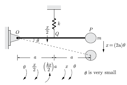 rigid bar OP hinged at O and a mass m at end P. The natural frequency of